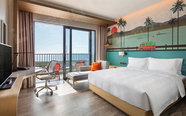 知趣系列酒店客房,房間用繽紛的色彩壁畫裝飾,采用簡約風(fēng)格的家具從設(shè)計(jì)到布置上迎合追求簡單的年輕化市場(chǎng),適合旅居辦公,外出游玩的年輕一派